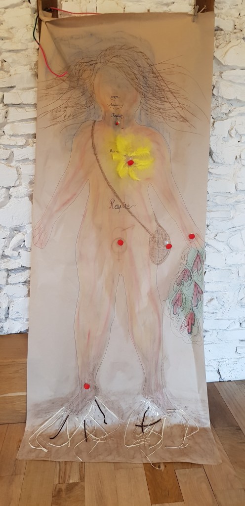 - De la représentation à la sensation : mise en forme des vécus psychocorporels afin de favoriser une élaboration de la pensée grâce aux dessins, mots, photos, argile, collage...