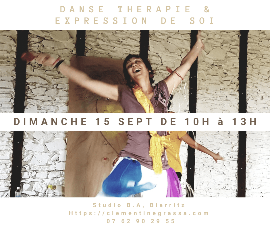 Studio BA, Biarritz Entre découverte des fondamentaux de la danse thérapie et créativité infinie dans la libre expression du soi. Confessions…. Effectivement, je fais le choix de ne pas vous informer du thème abordé; Ma principale motivation est de préserver une qualité d’écoute à ce qui doit être dans le moment présent. C’est aussi accueillirLire la suite « Danse thérapie et expression de soi Samedi 14 septembre de 14h à 17h »