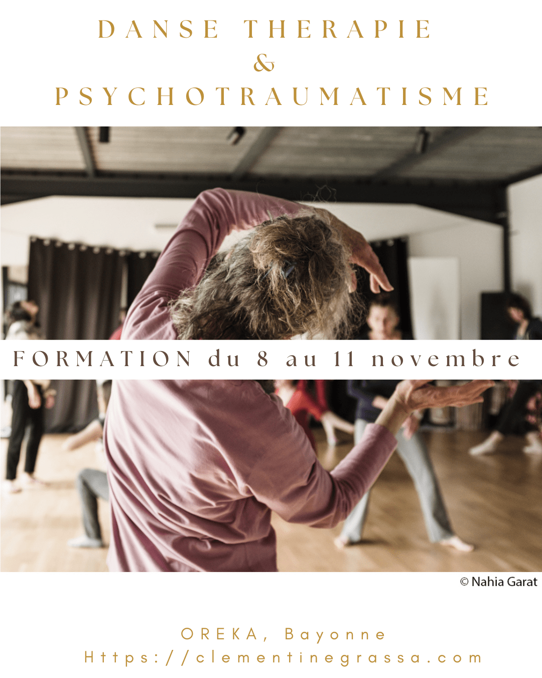 Session I: Du 8 au 11 novembre 2026Approfondissement: Du 13 au 15 février 2027Lieux : OREKA, Bayonne Les conséquences d’un évènement traumatique viennent impacter considérablement la vie de la personne et de son entourage. Il y a un « avant » l’évènement avec une sensation de rester prisonnier.e de ce temps et un « après » qui reste nébuleux, telleLire la suite « Psychotraumatisme et danse thérapie »