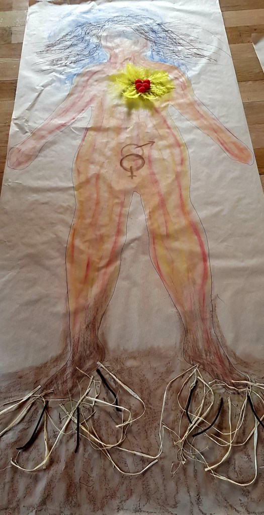 Grace à l’appropriation de nos différents systèmes, nous pouvons affiner la conscience de notre corps et œuvrer à une meilleure (ré)appropriation corporelle. Ainsi, les os me renverront à la sécurité de ma charpente osseuse et mes articulations ouvriront à l’ensemble de mes directions; les muscles, avec leur modulation tonique, seront révélateurs (entre autre) de nos supports reçus ou non pendant l’enfance, de notre capacité à nous détendre, d’observer quand je me tends… Et enfin notre peau, dans sa dimension relationnelle avec le Moi Peau d’Anzieu, sera garante de nos limites entre mon dedans et mon dehors. Par ce biais, j’aime penser qu’en me centrant sur le corps, nous évitons des envolées énergétiques et que seul ce qui est prêt à être mis en conscience, libéré et/ou transmuté, le sera. Associés aux schèmes moteurs de mouvements, c’est toute l’histoire de notre verticalité que nous retraversons.
